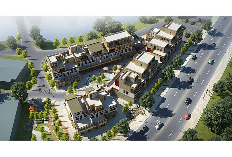 在設(shè)計中同時將當(dāng)?shù)匚幕慕ㄖA與中式圍合式院落的精粹完美的融合在一起,呈現(xiàn)出區(qū)域建筑獨有的風(fēng)范,詮釋居住理想的要素。8個獨立的住宅建筑組團構(gòu)成的圍合式建筑院落,讓人們的生活能夠享受到屬于自己的相對獨立的生活花園景觀,締造居住生活的理想。形成了連續(xù)的商業(yè)步行街,結(jié)合商業(yè)街景觀締造舒適精品的購物環(huán)境。使居住商業(yè)配套成為有機整體,為居民創(chuàng)造良好的居住生活品質(zhì)。